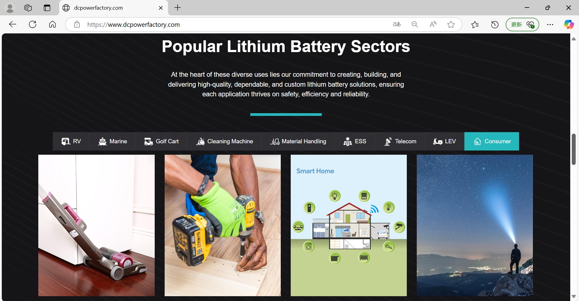 DC Power officially announced the completion of its website upgrade today. While continuing to strengthen the showcase of our lithium iron phosphate (LFP) battery solutions, we have simultaneously launched a dedicated consumer lithium-ion battery business segment, marking a pivotal step toward diversified energy solutions. This upgrade aims to meet the growing global demand for efficient and safe battery technologies in the consumer electronics market, covering a wide range of applications including vacuum cleaners, power/garden tools, smart home devices, and lighting fixtures.